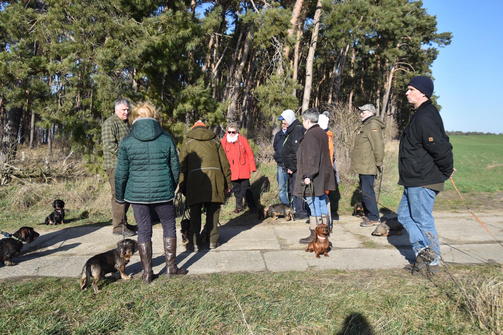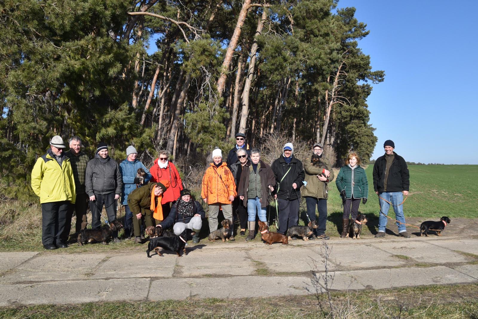 Am 08.02.2020 trafen sich 16 Teckelbegeisterte auf dem Parkplatz des Südringcenter bei Rangsdorf, um von dort zu einem Spaziergang bei Klein Kienitz aufzubrechen. Als alle ihre Hunde angeleint hatten, denn ohne ging es diesmal nicht, marschierten wir über Felder, Wiesen und an Waldrändern entlang.