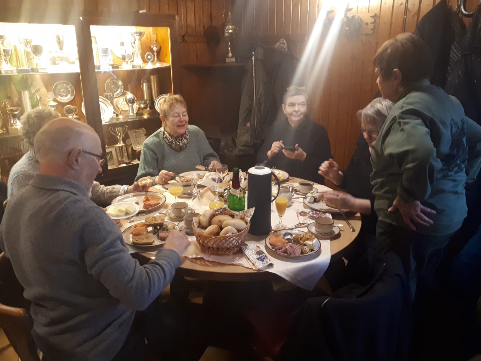 Nass aber glücklich zurück im warme Reiterhofstübchen, wärmten wie uns auf, um anschließend das dortige Büffet zu genießen. Trotz Wetter und vielleicht Kater, brachten wir es doch auf etwa 20 Läufer und den dazugehörigen Rabauken.
